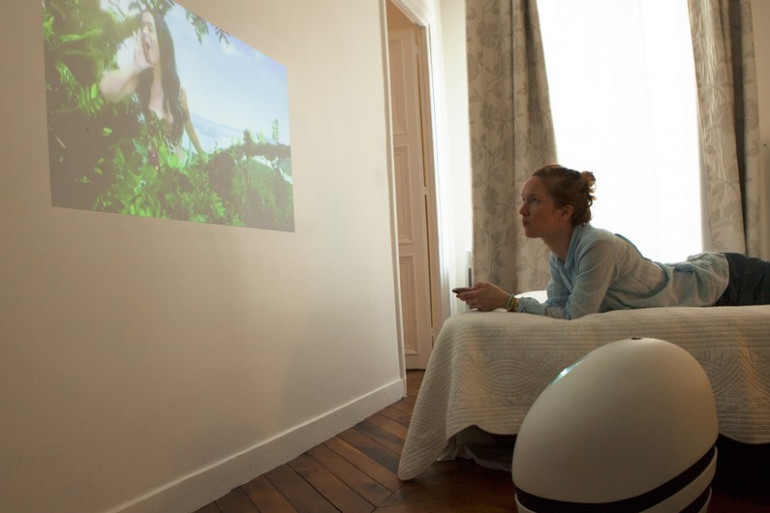 Vous voulez visionner sur grand écran, dans votre lit un film qui est sur votre ordinateur et bien vous faites venir votre robot dans votre chambre et Keecker va vous projeter le film sur votre mur ou au plafond. De la même façon, vous voulez faire en famille une projection de vos photos de vacances qui sont sur votre smartphone. Keecker vous les diffuse là aussi sur le mur.