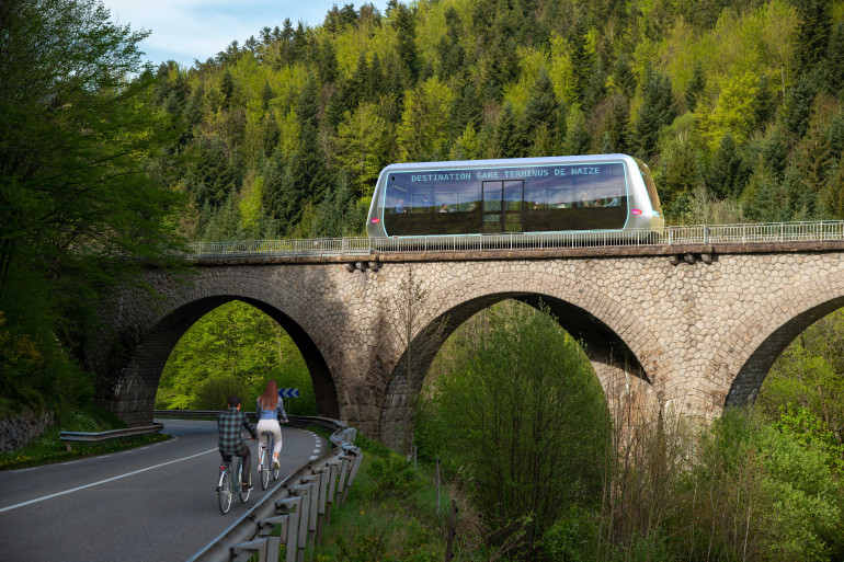 design déroutant entre le véhicule autonome et le petit train, la SNCF va