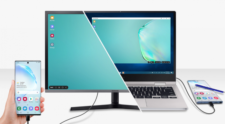 Le Note 10 propose aussi la fonctionnalité DeX qui permet de projeter le contenu du téléphone sur un écran d'ordinateur ou un Mac grâce à une sortie HDMI et un logiciel dédié pour l'utiliser comme un ordinateur portable avec un clavier et une souris. Nous n'avons pas pu le prendre en main pour l'instant mais la fonctionnalité était plutôt aboutie avec le Galaxy Note 9.