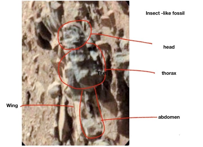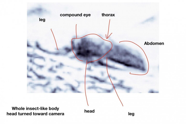 "Trois régions du corps, une seule paire d'antennes et six pattes suffisent traditionnellement pour établir l'identification en tant qu'insecte sur Terre, estime le Dr Romoser. Ces caractéristiques doivent également être valables pour identifier un organisme sur Mars comme semblable aux insectes. Sur ces bases, on peut voir des formes semblables à des insectes sur les photos."