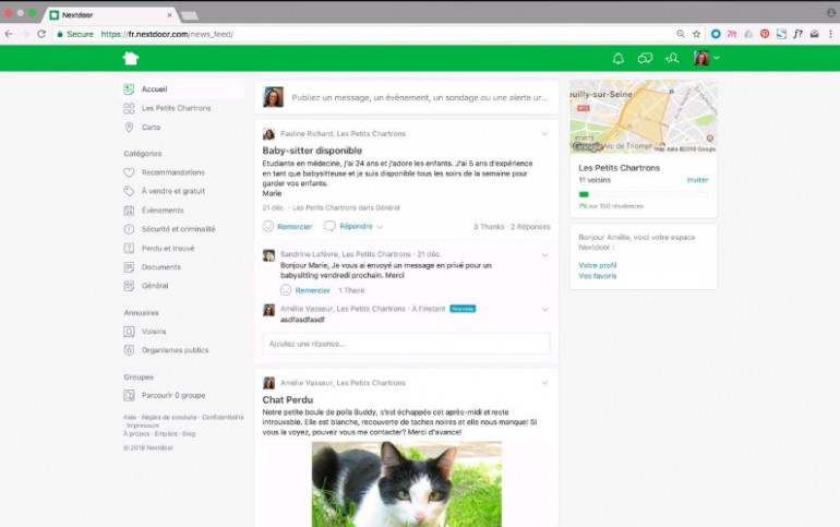 Le réseau social de quartier leader aux États-Unis est disponible en France depuis le 1er février 2018