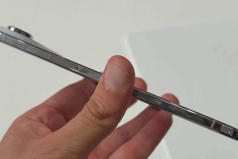 Avec seulement 5,6 mm d’épaisseur, contre 8 à 8,7 mm pour les autres iPhone, l’iPhone Air fait figure d'ovni et s’impose comme le champion des smartphones ultrafins, devançant même le Galaxy S25 Edge de 0,2 mm. Allongé mais léger, avec son écran de 6,5 pouces, ses bords arrondis et ses 165 g sur la balance, il se manipule avec un confort remarquable et se glisse facilement dans une poche. L’impression est celle d’un appareil à part, à l’instar de l’iPhone X et de son écran intégral sorti en 2017. Cette sensation est renforcée par la nouvelle coque ouverte Bumper, qui n'enrobe que les bords et met en valeur la finesse de l’appareil. Apple promet une solidité à toute épreuve. Des tests de robustesse ont été réalisés en interne pour que l'appareil puisse retrouver sa forme d'origine même sous une pression de plus de 60 kilos.