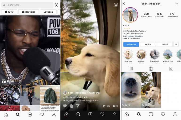 Une seule section est consacrée aux Reels dans l'application pour l'instant. L'entreprise a réorganisé son onglet "Découverte" (accessible via le bouton "Rechercher") en dédiant la première entrée vidéo aux contenus créés par ses utilisateurs sur Reels. La fonctionnalité devrait gagner de la place dans les prochaines semaines. Certains utilisateurs ont déjà commencé à recevoir une mise à jour dans laquelle elle dispose de son propre onglet, à la place du menu "Rechercher", qui se retrouve déporté en haut à droite, à côté des messages privés.