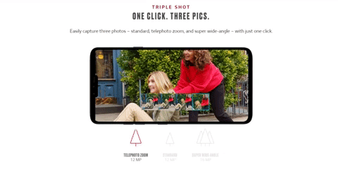 L'approche est différente chez LG. Annoncé aux États-Unis, le V40 (900 dollars) embarque une triple caméra arrière composée d'un capteur standard, d'un téléobjectif et d'un monochrome (pour une plus grande plage dynamique) qui capture trois clichés selon trois angles différents lors de chaque prise de vue, charge à l'utilisateur de sélectionner celle qu'il souhaite conserver. À l'avant, le double capteur permet notamment de réaliser des selfies grand angle.