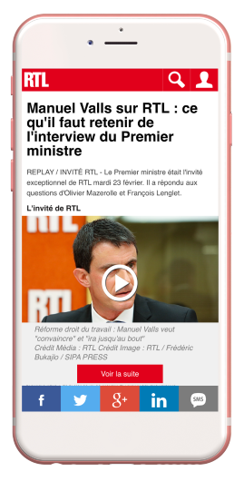 Le nouvel affichage des pages de RTL.fr avec le projet AMP de Google