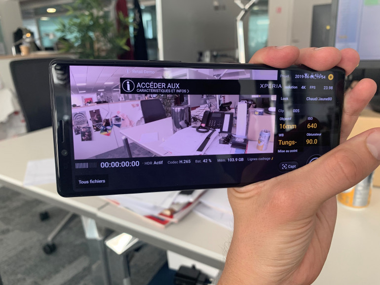 Sony propose aussi un mode créateur qui transforme le Xperia 1 en simili caméra professionnelle avec l'interface caractéristique des caméras CineAlta, la division hollywoodienne de la marque. L'application Cinema Pro propose un contrôle plus précis de l'image et des profils colorimétriques afin de donner un effet cinéma aux vidéos. Le résultat n'est pas très convaincant pour les non initiés mais les spécialistes apprécieront le clin d'oeil.