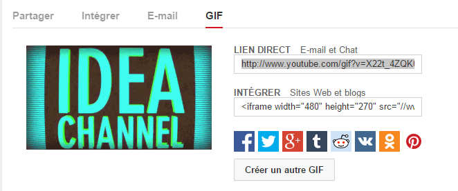 Sous la vidéo, cliquez sur "Partager", puis sur "GIF".