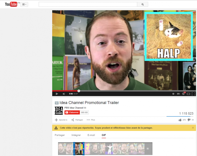 Cependant, vous ne pourrez pas diviser votre GIF en plusieurs parties de la même vidéo : impossible de choisir 3 secondes d'images, puis 3 autres secondes à un autre endroit de la vidéo. Pour l'instant, l'outil de création n'est disponible que sur la chaîne PBS Idea Channel, mais nul doute qu'il arrivera très rapidement pour toutes les autres vidéos du site.
