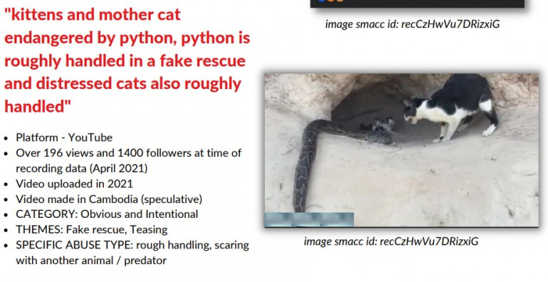 Ce sont des animaux stressés, maltraités, enterrés, noyés ou incendiés, des chatons piétinés, des chiots et des canards étouffés à mort par des serpents, des singes saoulés à la vodka, des mises en scène de sauvetage… Publiées à titre de divertissement et vues par des milliards de téléspectateurs, ces séquences optimisées pour les algorithmes des plateformes passent entre les mailles des systèmes de modération. Elles peuvent rapporter des millions d'euros à leurs créateurs et aux plateformes qui les monétisent en utilisant les outils publicitaires à leur disposition. Les auteurs du rapport estiment que YouTube a gagné ainsi jusqu'à 12 millions de dollars en trois mois fin 2020 grâce au partage de contenus de ce type.