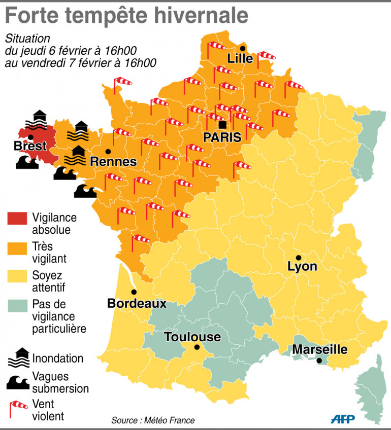 Les prévisions météo du jeudi 6 février 16h au vendredi 7 16h