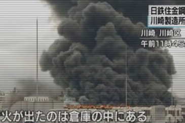 Le feu a éclaté dans une tour de refroidissement de l'usine Nippon Steel and Sumitomo Metal, au sud de Tokyo, avant de se propager dans le complexe industriel. Un épais panache de fumée noire s'est dégagé dans le ciel.