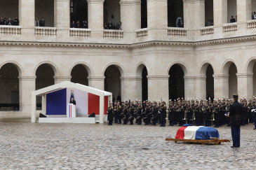 Le chef de l'État a prononcé l'éloge funèbre lors de la cérémonie en hommage au gendarme, affirmant que "sa mémoire vivra". Arnaud Beltrame "rejoint le cortège valeureux des héros qu'il chérissait", a déclaré Emmanuel Macron.