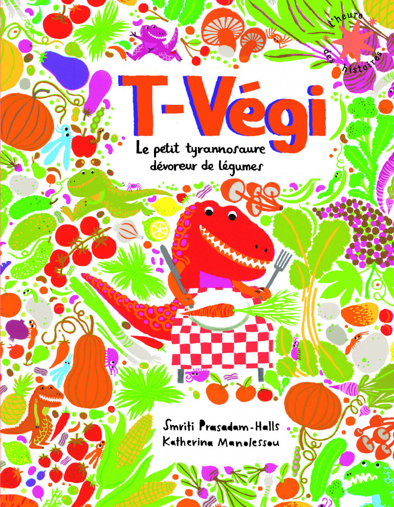 Les T-rex on le sait étaient de vraies terreurs au temps des dinosaures. Capable d'avaler 230 KG en une seule bouchée. Sauf que dans cette histoire de l'autrice britannique Smriti Halls et l'illustratrice Katherina Manolessou, notre petit tyrannosaure est ... végan ! totalement végan : carottes, pastèques, mangues, pêches, ananas, il en mangerait de pleines calebasses, tartes au poireaux et mousse d'avocats sont ses amis.