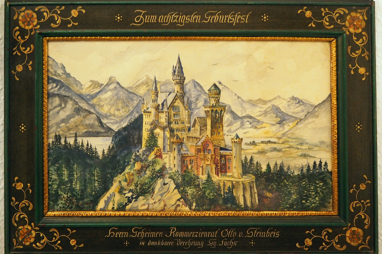 Une aquarelle représentant le château de Neuschwanstein signée Adolf Hitler.