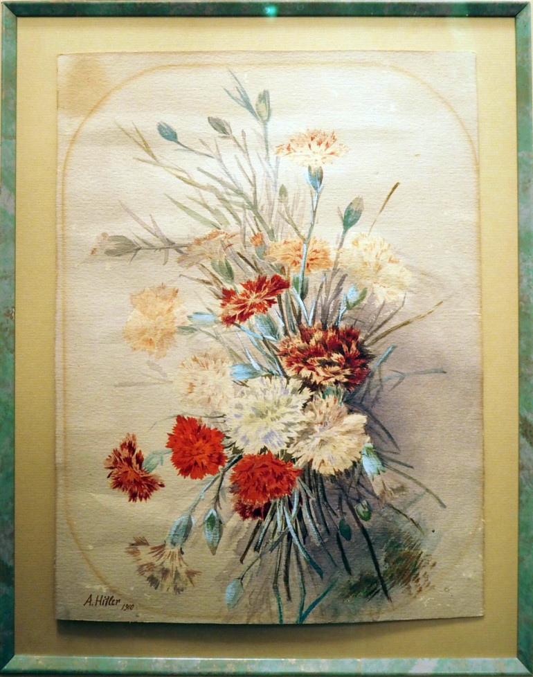 Dans ses jeunes années, Adolf Hitler avait cherché à s'inscrire à l'Académie des arts de Vienne, mais sa candidature avait été rejetée au motif d'un manque de talent. Il avait continué à peindre en copiant des scènes de cartes postales qu'il vendait aux touristes.