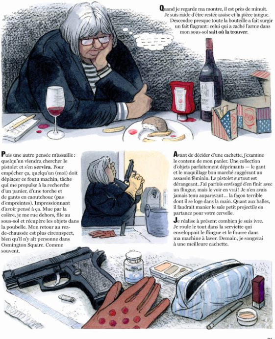 Chez Nicki, la fracture est plus sentimentale que sociale. Elle n'arrive pas à trouver un prince charmant, et quand elle en trouve un, il devient très vite un problème. Avec ce nouveau personnage, ce roman graphique d’un genre très particulier vire au thriller. Ce qui est passionnant dans cet album, et très réussi, c’est la manière dont Posy Simmonds place Cassandra Darke au-delà du bien et du mal.