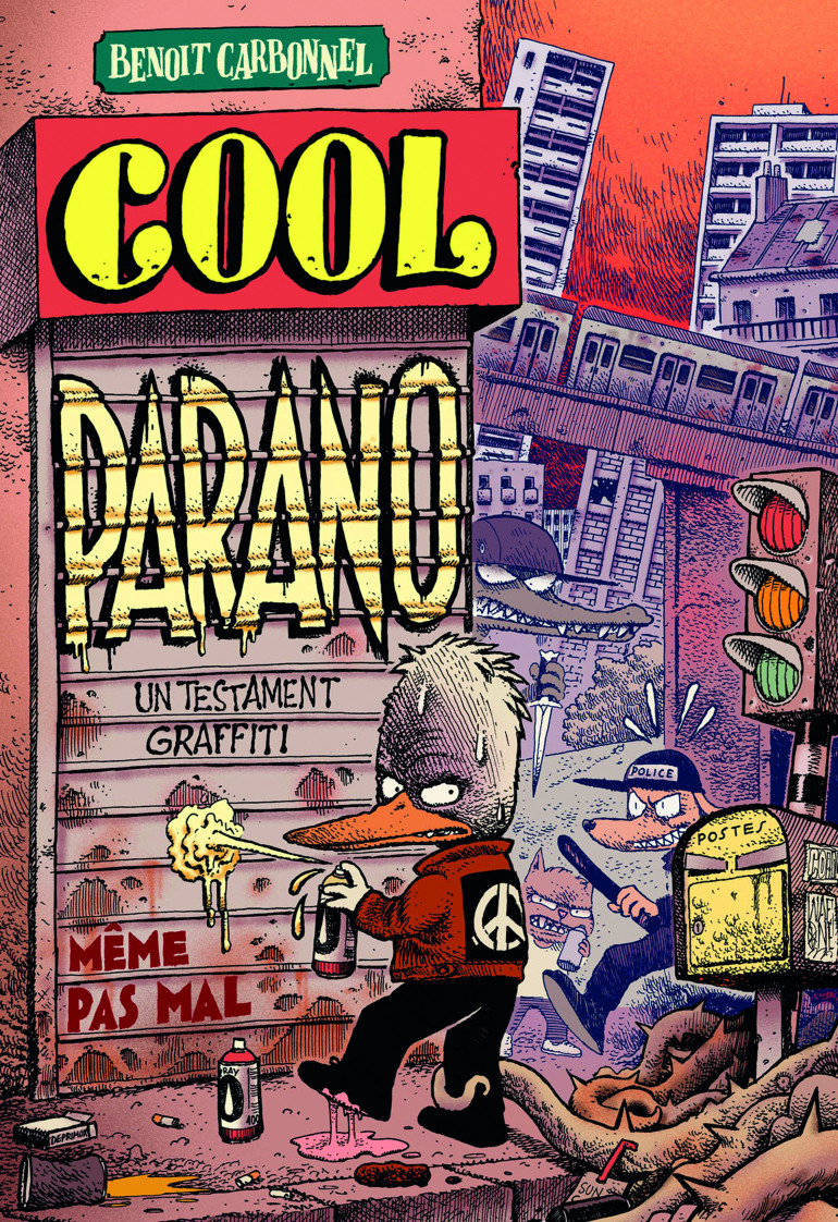Aujourd'hui Benoit Carbonnel n’est plus graffeur, il est graphiste, c’est moins dangereux et plus rentable. Il a aussi publié un album d’illustration. Mais Cool Parano est son premier roman graphique. Cool Parano est donc un album furieusement autobiographique. Mais c’est aussi un documentaire unique, complet, sur cette activité artistique souvent risquée du dessin ou du tag, car n’oubliez pas que les graffeurs sont des délinquants. Ils risquent la prison en faisant de l’art, le paradoxe interroge. Dans Cool Parano, le héros signe "coin coin".