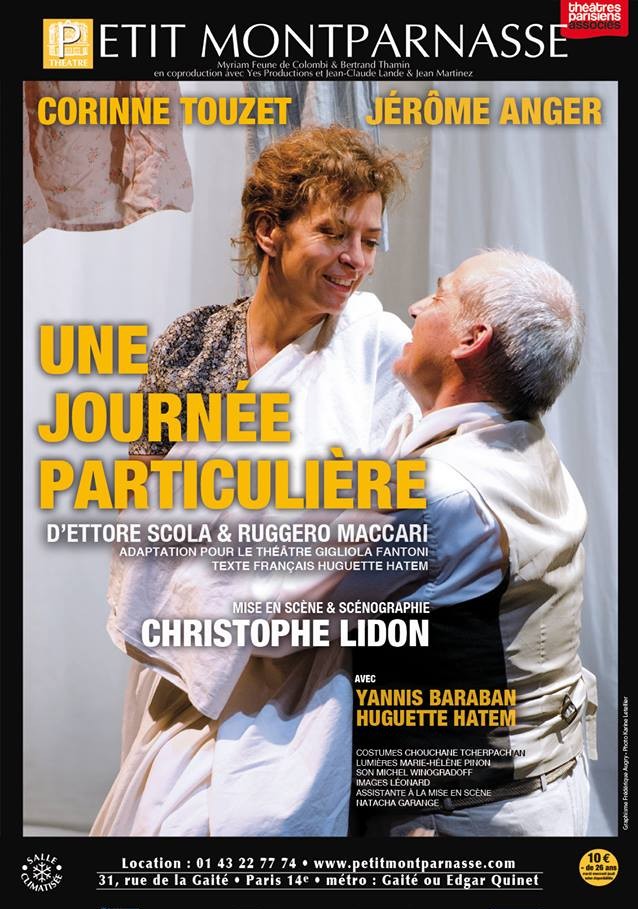 Une journée particulière d'Ettore Scola, avec Corinne Touzet aux côtés de Jérôme Anger, Yannis Baraban et Huguette Hatem. Du mardi au samedi à 21h au Petit Montparnasse. Matinée le dimanche à 15h.