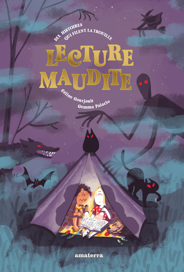 Pour les 6-9 ans, régalez-vous avec Lecture maudite aux éditions Amaterra. Lecture maudite est un recueil de 10 histoires où Céline Gourjault, l’autrice, et Gemma Palacio, l’illustratrice, mêlent avec talent peur, frisson et suspense. Dix histoires comme Le chateau de Bruce Mac Dougall, Bob le boucher, Le collier d'émeraudes, Art et cauchemars, Le croque-mort et la sorcière, Lecture maudite ou encore Le chemin des morts etc. 10 histoires pour se faire peur sans finir sous le lit !