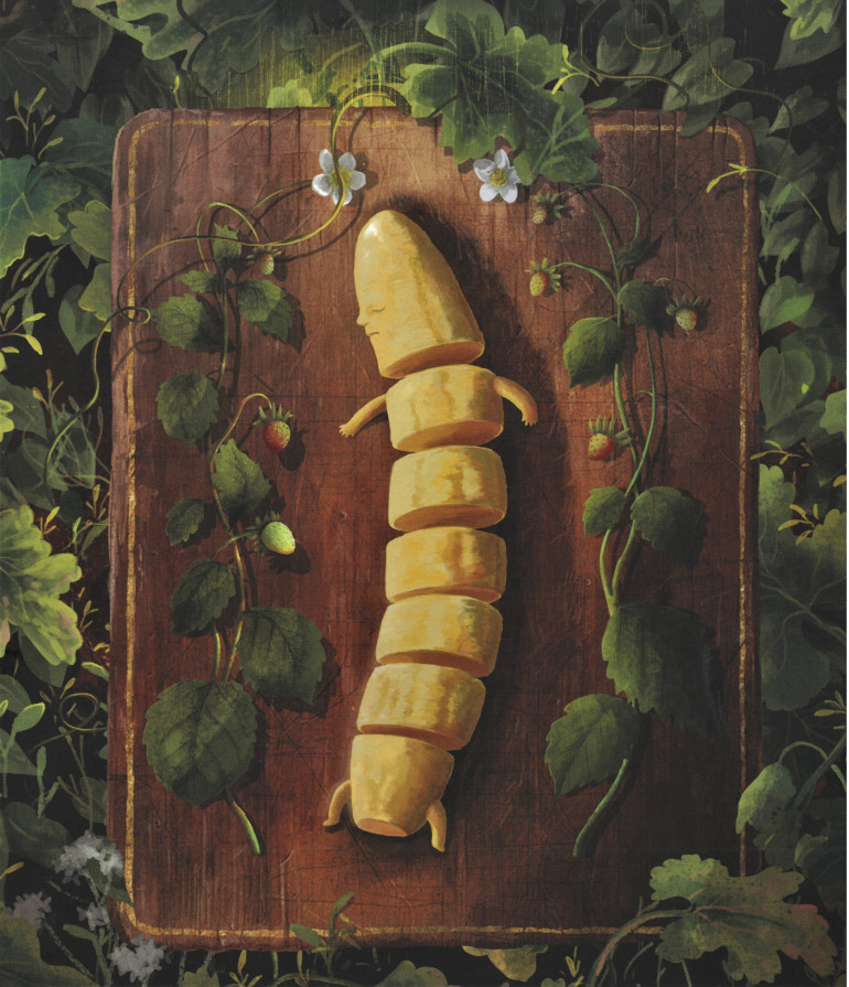 Dans Le Supplice de la banane et autres histoires horribles, Madlena Szeliga auteure polonaise, se penche sur ce massacre quotidien ici une carotte qu'on scalpe et dont on arrache la peau, avant de tailler son corps en morceau, là un oignon qui dans une tentative désespérée cherche à implorer la pitié de l'homme. Comment ? En le faisant pleurer.