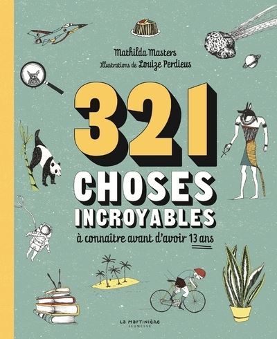 Autre livre, une "bible" sur tout et n'importe quoi 321 choses incroyables à connaitre avant d'avoir 13 ans. Œuvre d'une exploratrice : Mathilda Masters, elle a rassemblé ici 321 anecdotes qui rendent plus intelligent. Saviez-vous que les girafes sont capables de se lécher les oreilles ? Que le corps humain est plus grand le matin que le soir ? Que le vent n'existerait pas sans le soleil ?