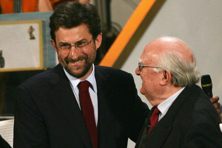 Andrea Camilleri (à droite) est décédé, a-t-on appris mercredi 17 juillet 2019