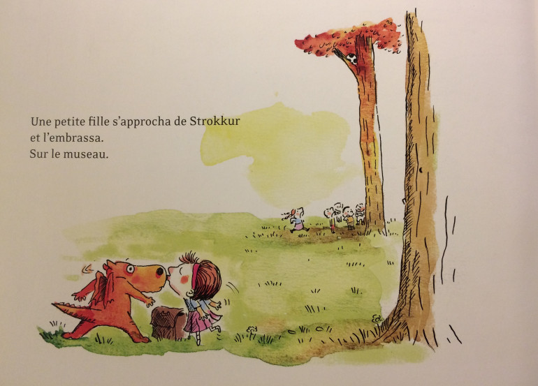 Strokkur est un gentil dragon qui, ne cherchez pas à comprendre, aime jouer avec les enfants au square de la ville. Mais un jour, son amie Violette (allez comprendre pourquoi) l'embrasse sur le museau. Strokkur se met alors à cracher une immense gerbe de feu, son cœur s'emballe, un gros bouillon de feu se met à remuer en lui... ça n'a pas loupé : le dragon est amoureux.