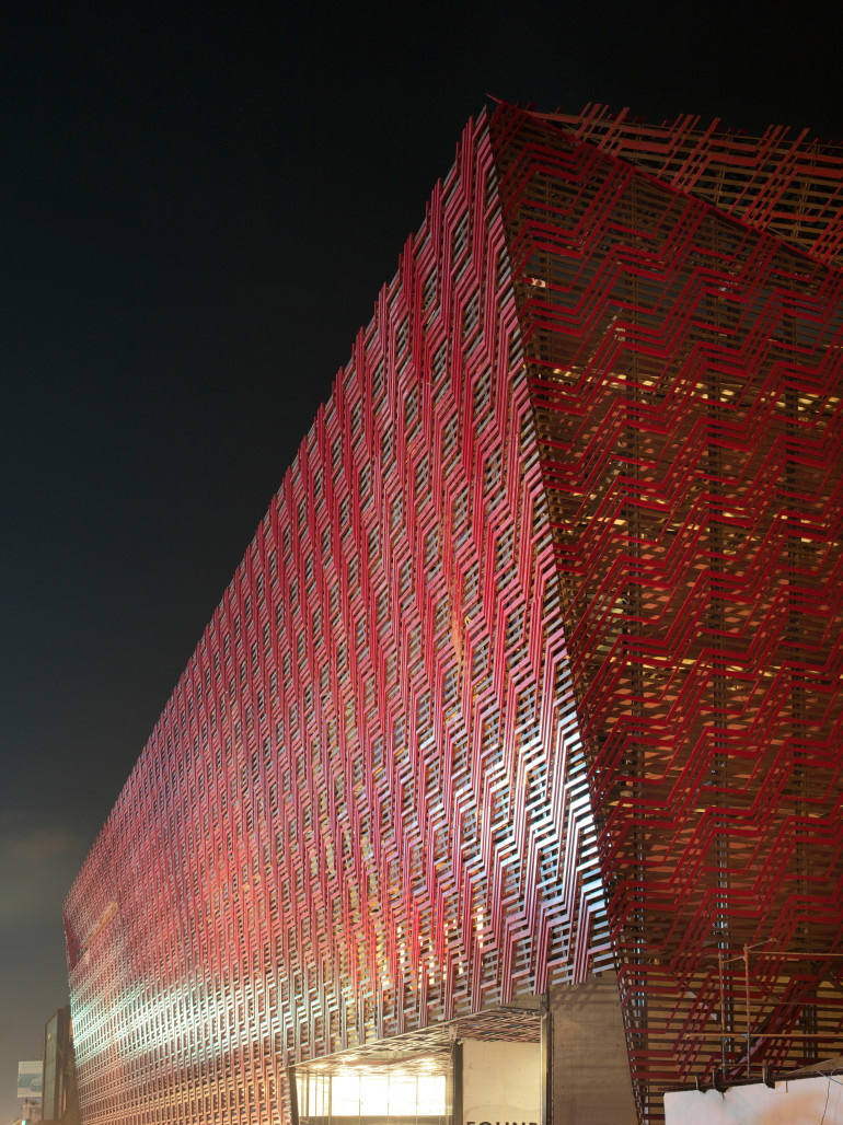 L'atypique façade rouge de la fondation Aishti, œuvre de l'architecte britannique David Adjaye