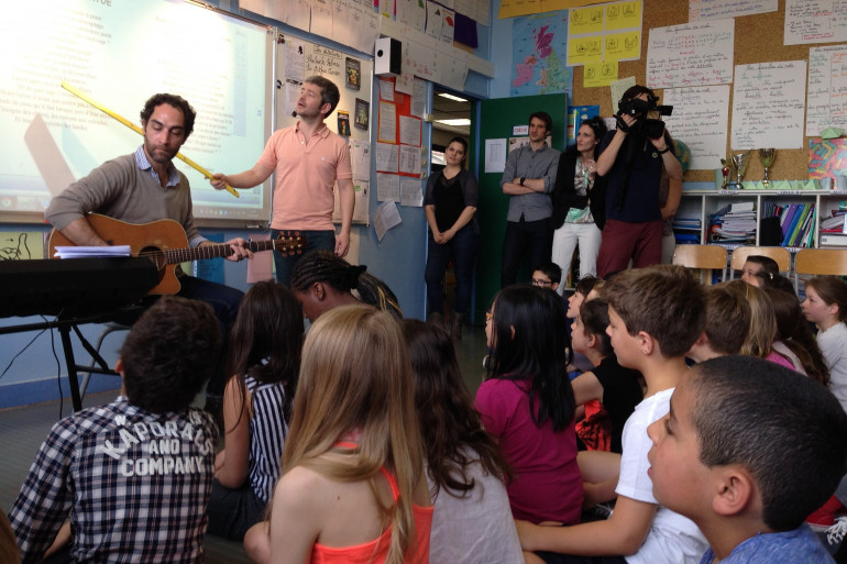 Le chanteur Grégoire publie cette semaine "Poésies de notre enfance", un nouvel album de 19 textes appris depuis toujours à l'école. Le chanteur a présenté ses chansons aux élèves de CM2 de l'école Montretout à St Cloud.