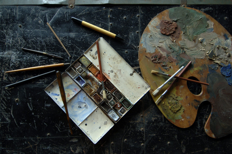 La boîte d'aquarelle de l'auteur du "Petit Prince" exposée au Mémorial de Caen en 2006