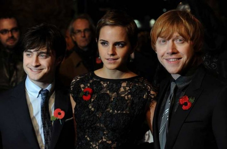 Daniel Radcliffe, Emma Watson et Rupert Grint, alias Harry, Hermione et Ron lors d'une avant-première pour le dernier volet de la saga Harry Potter ("Harry Potter et les reliques de la mort")