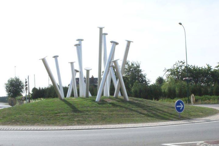 Une œuvre originale aujourd'hui proposée par Laurence. A Rugles dans l'Eure, le fer et la fabrication de clous ont fait la prospérité de la ville et ce rond-point en est la symbolique. Ces imposants clous de plusieurs mètres de haut sont au nombre de 16 ce qui représente les différentes communes du canton. Et vous, connaissez-vous un rond-point susceptible de détrôner celui de Laurence ? Si oui, partagez vos photos avec nous !