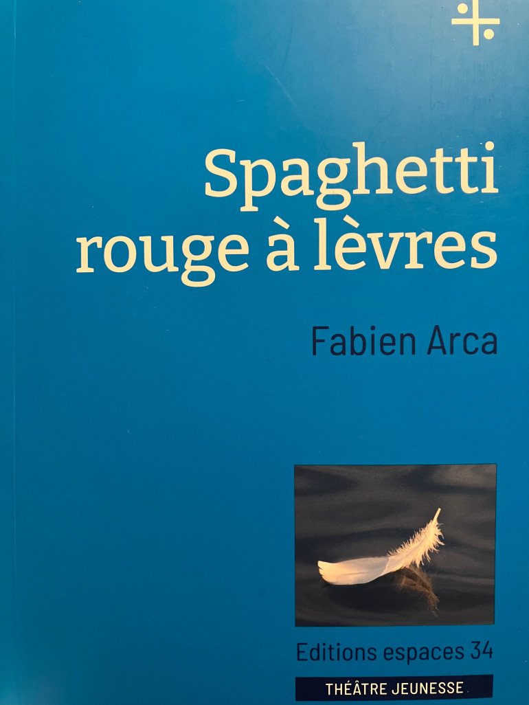 Autre livre, autre ambiance. Un petit livre. Un monologue signé Fabien Arca aux Editions espace 34 : Spaghetti rouge à lèvres. Il fait partie des livres sélectionnés pour les pépites du salon de la presse jeunesse de Montreuil (chaque année en décembre).