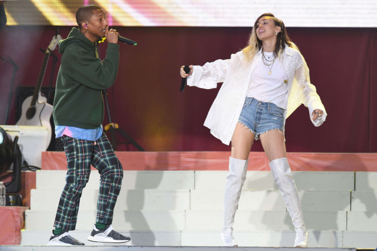 Pharrell Williams et Miley Cyrus sur la scène de "One Love Manchester"
