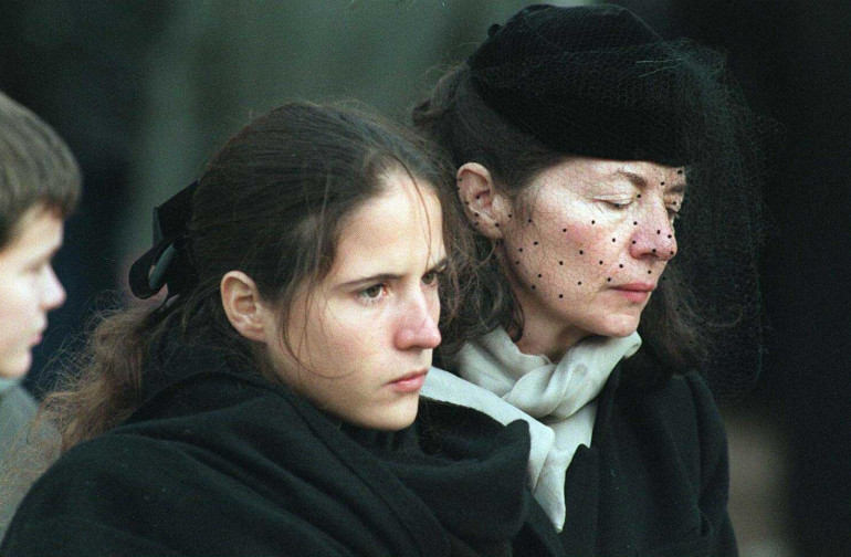Anne Pingeot, au côté de sa fille Mazarine lors des funérailles de François Mitterrand en 1996