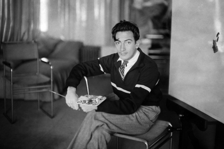 Illustration de l'artiste espagnol Salvador Dali en train de peindre dans les années 30.