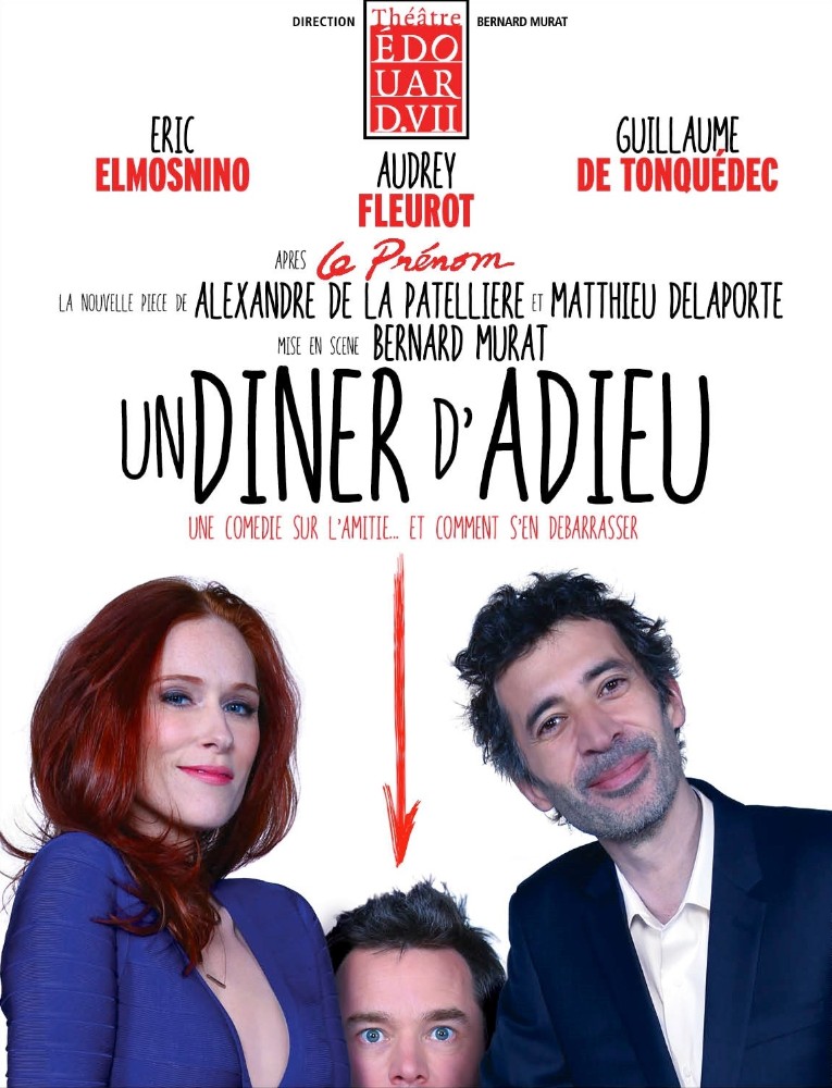 Un diner d'adieu, d'Alexandre de la Patellière et Matthieu Delaporte, avec Audrey Fleurot, Eric Elmosnino et Guillaume de Tonquédec. Actuellement au Théâtre Edouard VII.