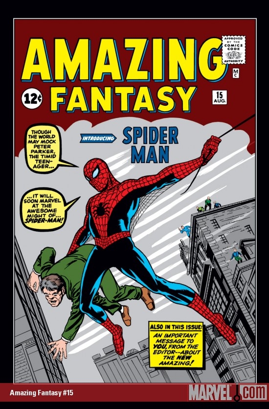 Le 10 août 1962, la première aventure de Spider-Man se glisse donc dans les pages d'Amazing Fantasy. Et le public adore l'histoire de cet orphelin, Peter Parker, qui peut grimper aux murs, tisser des toiles, sauver le monde et avoir des problèmes quotidiens. C'est ensuite la naissance de la revue Amazing Spider-Man, bien connue des lecteurs où Spider-Man poursuit ses aventures.