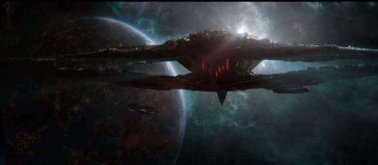 C'est bien le vaisseau de Thanos qui fait son grand retour dans l'aventure Marvel. La première fois qu'on a vu cet enfin de la Mort, c'était à la fin de Thor : Ragnarok, lorsque le Titan et son Ordre Noir se préparaient à attaquer le vaisseau des Asgardiens. On le retrouve ensuite dans les premières minutes d'Avengers : Infinity War.