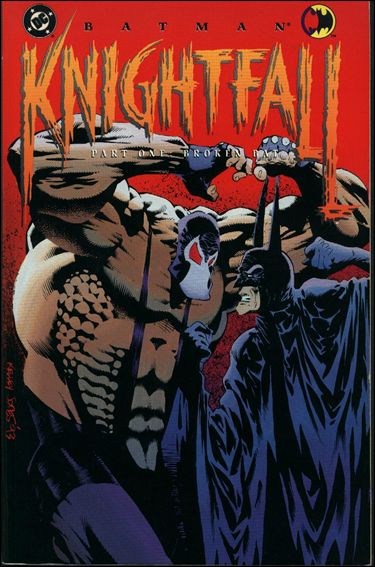 En 1993, un nouveau choc surprend les fans de Batman. Dans Batman: Knightfall Part One de Doug Moench, le Chevalier Noir rencontre Bane (Tom Hardy dans les films de Nolan). Il libère tous les ennemis de Batman de l'Asile d'Arkham qui se met à les traquer un par un. Il rentre épuisé et en mauvais état à son manoir. Entre-temps, Bane a découvert sa véritable identité et assassiné Alfred. Il brise le dos de Bruce et l'abandonne dans les rues de Gotham. Bruce passe alors le relais à Jean-Paul Valley alias Azrael.