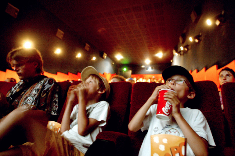 Des enfants assistent à la projection d'un film, le 26 juin 2005 à Lyon, lors de La Fête du cinéma