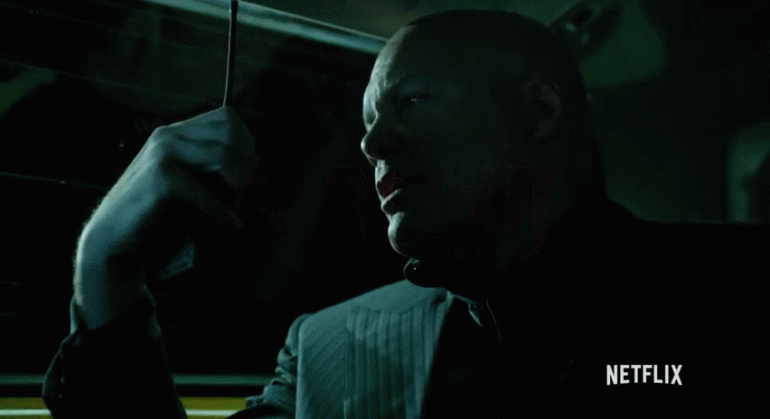 Il s'agit du Caïd joué par Vincent D'Onofrio. Le chef de la pègre new-yorkaise est l'un des principaux ennemis du héros dans les comics, usant de ses relations et de son pouvoir pour engager les assassins les plus doués et asseoir sa domination sur la ville. Il est aussi capable de se battre et possède une bonne force physique. Le trailer laisse aussi entendre qu'une relation particulière va se tisser entre les deux antagonistes, à travers une conversation que les deux hommes ont via talkie-walkie.