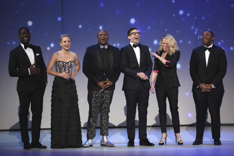 Sterling K. Brown, Kristen Bell, Tituss Burgess, Andy Samberg, Kate McKinnon et Kenan Thompson lors des 70ème Emmy Awards