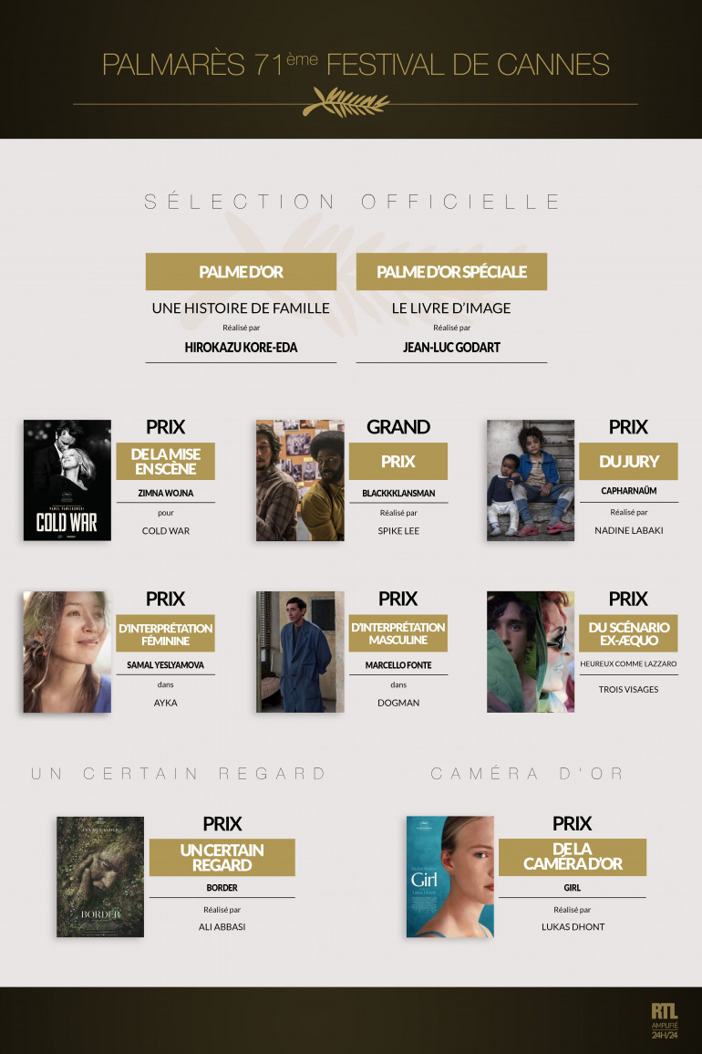 20h04 - Le Prix spécial du 71e Festival de Cannes est décerné à Jean-Luc Godard pour Le livre d'image.