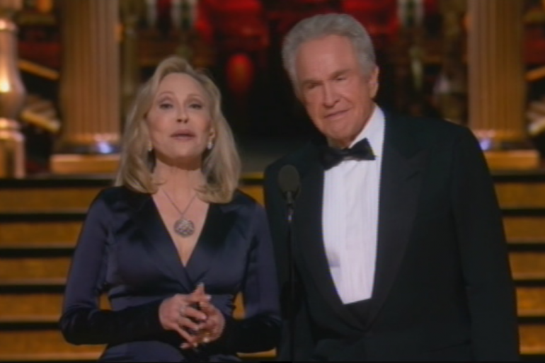 05h41 - Faye Dunaway et Warren Beatty sont de retour après l'erreur magistrale de l'année dernière. Tout est pardonné et leur arrivée a été saluée par une standing ovation méritée.