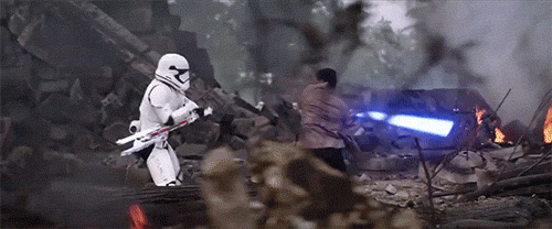 Finn, joué par John Boyega, est un personnage complexe. Il est d'abord un stormtrooper, c'est-à-dire un soldat du Premier Ordre, avant de quitter son poste pour des raisons inconnues. Finn dit avoir été "élevé pour faire une chose" mais "n'a aucune raison de se battre". Une fois échappé, il rencontre Rey sur la planète Jakku. Elle le fait entrer dans la Résistance. Comme la jeune femme, on ne sait pas grand-chose de son passé. "Tu ne sais rien de moi, de ce que j'ai vu", explique-t-il d'ailleurs dans un spot TV.