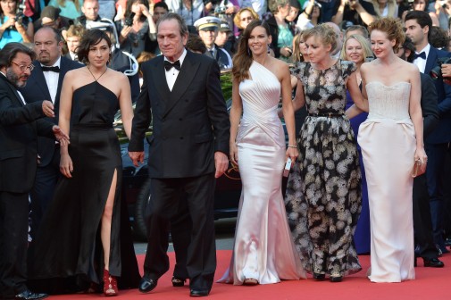 Une autre équipe de film a également monté les marches du Festival dimanche 18 mai. Tommy Lee Jones a présenté sa dernière réalisation The Homesman avec Hilary Swank.