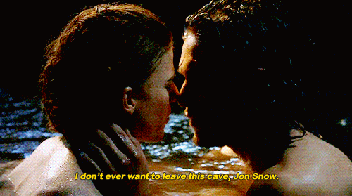 Ygritte et Jon cachés dans la grotte (saison 3)