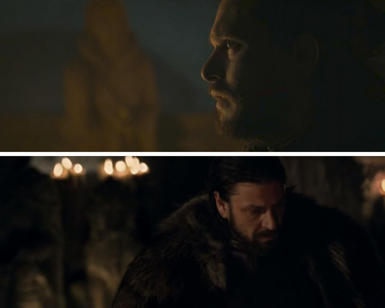 Dans la saison 8, Sam révèle la vérité à Jon, que les fans ont découvert dans la saison 6, grâce à une vision de Bran. Plus encore, Jon se trouve près de la statue de son père Ned. Or, la dernière fois qu'ils se sont vus, Ned lui confie : "La prochaine fois que l'on se verra, je te parlerai de ta mère". C'est un symbole : Ned n'est plus là, mais sa statue mortuaire est au côté de Jon lorsqu'il apprend la véritable identité de sa mère.