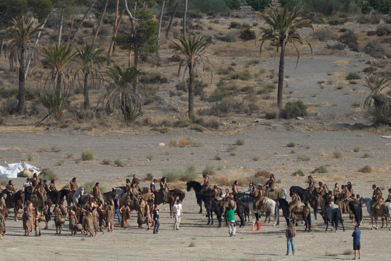 Samedi 10 octobre, le tournage a recommencé en Espagne. Des décors étaient installés dans la localité de Pechina, en Andalousie, à une vingtaine de kilomètres au nord d'Almeria, sous une forte protection pour empêcher l'accès aux curieux. Quelque 2.400 figurants, hommes et femmes "de 18 à 65 ans, méditerranéens, de peau sombre, et noirs", ont été sélectionnés dans la région il y a trois mois, selon la société en charge du casting. Ils gagnent 50 euros net par jour, a indiqué l'AFP. Les journées de tournage, qui vont durer jusqu'au 23 octobre, s'annoncent longues pour les figurants qui vont devoir être maquillés, "perruqués" et habillés.
